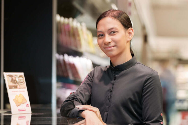 Genauso offen und herzlich hat auch Vani Seemawong den Einstieg bei Sutterlüty erlebt. Die junge transidente Frau ist erst seit Kurzem Teil des Teams; sie ist mit ihren Kolleg*innen vom ehemaligen Billa-Plus-Markt in Rankweil übernommen worden und freut sich über den schönen, neu umgebauten Ländlemarkt Passage 22. Da gibt es alles, was Sutterlüty ausmacht – nur einfach mehr davon: mehr Auswahl, mehr Vielfalt und vor allem mehr Regionalität. Genau das findet auch Vani großartig, denn nun kann sie ihre Stammkund*innen in der Feinkost mit den besten Vorarlberger Produkten verwöhnen. Mindestens so  wichtig ist für sie die gelebte Vielfalt: „Ich bin zwar noch nicht lange dabei, aber man spürt gleich: Hier gibt es keine Ausgrenzung, jeder und jede ist gleich und ich werde voll und ganz akzeptiert.“ Nur Lobesworte hat Vani auch für Marktleiterin Jovana Yildirim übrig. „Sie hört zu, ist fair und schaut, dass es wirklich allen gutgeht.“