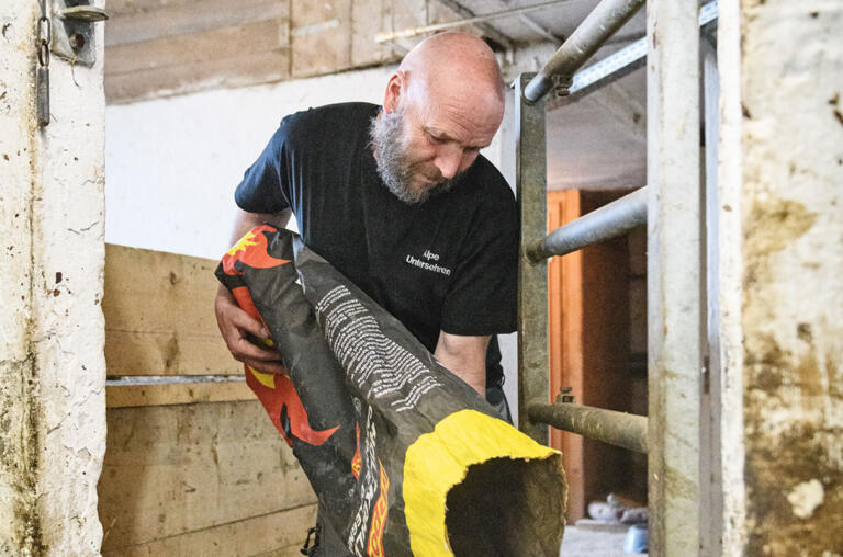 Auch für viele kleine und größere Wehwehchen hat der findige Rinderzüchter über die Jahre Wege gefunden, sich und seinen Tieren unkompliziert das Leben leichter zu machen. „Man muss einfach genau hinschauen, dann kommt man schon drauf, was die Tiere brauchen.“ Wenn etwa auf der Alpe über 170 Tiere aus 13 oder 14 verschiedenen Betrieben auf einen Schlag zusammenkommen, ist das eine enorme Herausforderung fürs Immunsystem. „Vor ein paar Jahren haben wir auf der Alpe ein Feuer gemacht. Einige der Kühe haben dort später Kohlestücke rausgefischt. Da hat es auch bei mir gezündet: Seitdem biete ich ihnen auf der Alpe und auch hier im Stall Holzkohle an – und wir haben keine Probleme mehr mit Durchfall.“ Auch gegen die Glatzflechte, eine durch einen Pilz verursachte Hauterkrankung bei Kälbern, ist bei Reinhold ein Kraut gewachsen. „Dagegen hänge ich Stechlaub in den Stall“, erklärt Reinhold. „Wenn man früh genug dran ist, reichen die darin enthaltenen ätherischen Öle zur Behandlung aus.“ Den Tierarzt sehen die Tiere deshalb nur selten.