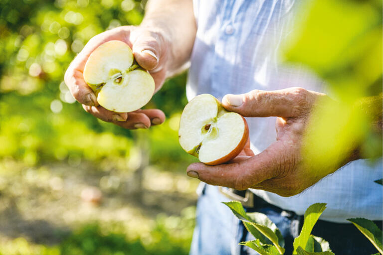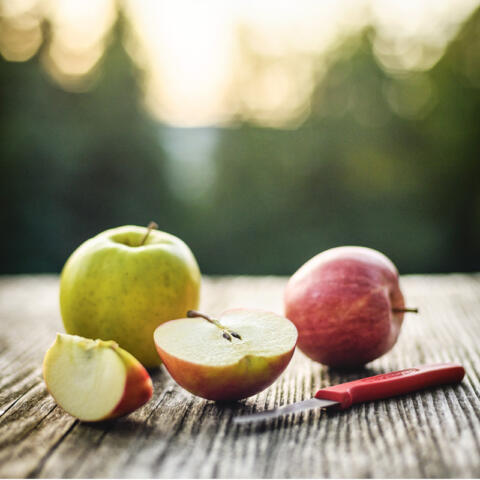 Beim Kauf sollte ein Apfel prall sein, eine unbeschädigte Schale haben und auch duften wie ein Apfel. Beim Durchschneiden sollten die Kerne braun-schwarz aussehen. Wie für alle Obst- und Gemüsesorten gilt auch für Äpfel: Lange Transportwege sind weder nachhaltig noch gut für die Qualität. Importierte Äpfel werden entweder früh geerntet oder lagern bereits lange. Beides wirkt sich ungünstig auf den Vitamin-Gehalt und Letzteres zudem auf die CO2-Bilanz aus. Dasselbe gilt allerdings auch für regionale Äpfel außerhalb der Saison: Um nach Monaten noch knackig und frisch im Regal liegen zu können, müssen die Äpfel bei niedrigem Sauerstoffgehalt und bei Temperaturen knapp über null Grad gelagert werden. Und das kostet Energie. Daher gilt: Regional ist gut. Aber regional und saisonal ist am allerbesten!