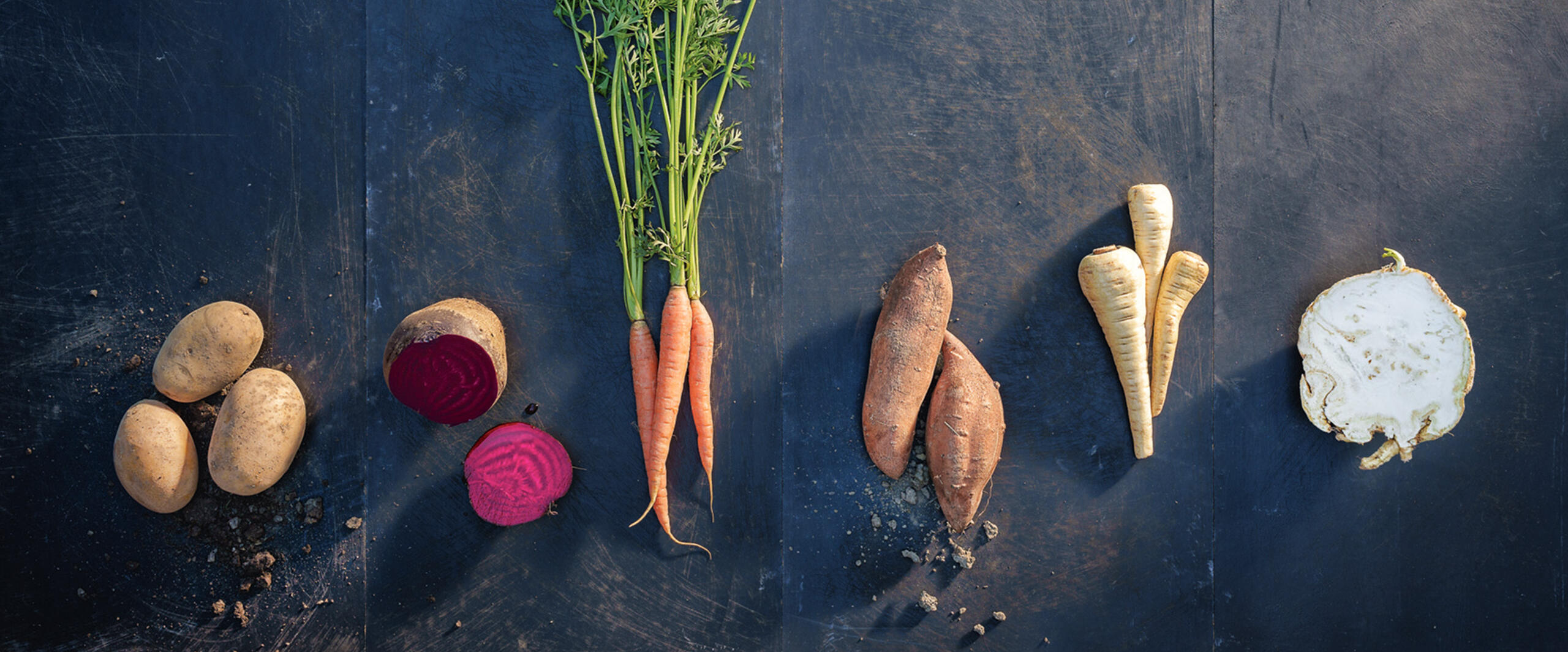 Wurzelgemüse überrascht nicht nur mit einer geschmacklichen Vielfalt – vor allem die zahlreichen wertvollen Inhaltsstoffe wie Vitamine, Mineralstoffe und Spurenelemente, aber auch sättigende Kohlenhydrate sind für unseren Organismus von Bedeutung. Zudem enthält Wurzelgemüse weniger Wasser als andere Gemüsearten. Von den bemerkenswerten Nährstoffpaketen profitieren sowohl die Augen, die Haut und der Stoffwechsel als auch die körperliche Leistungsfähigkeit – und natürlich die Abwechslung auf dem Teller. Denn Wurzelgemüse macht nicht nur als Suppe oder Salat, sondern auch gedünstet, gebacken, als Püree oder als leckere Knabberei aus dem Ofen eine gute Figur.