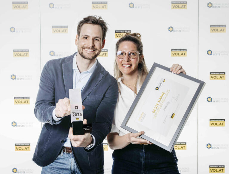 Sutterlüty konnte sich erneut den Titel als Vorarlbergs beste Marke sichern. Gemeinsam mit der Mohrenbrauerei wurde das Unternehmen von den Vorarlberger*innen, im Rahmen einer Umfrage im Auftrag von VOL.AT, für das Jahr 2023 ausgezeichnet. Damit sichert sich Sutterlüty bereits zum vierten Mal diesen begehrten Titel und bestätigt erneut seine herausragende Stellung als eine von Vorarlbergs führenden Regionalmarken.