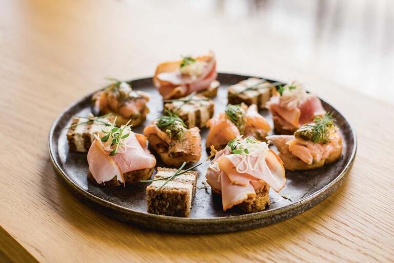 Wälderschinken mit Kren, Graved Lachs mit Dill-Senfsauce, Bio-Frischkäse10 Min.