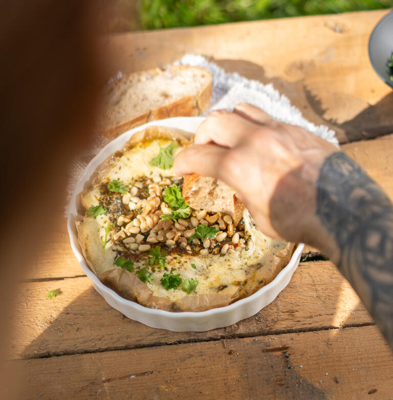 Den Grill auf mittlere bis hohe Hitze vorheizen und den Feta-Käse in eine kleine, grillgeeignete Form legen. Den Honig gleichmäßig über den Feta träufeln und mit gehacktem frischem Thymian bestreuen. Die Nüsse grob hacken und großzügig über dem Käse verteilen. Alles mit Olivenöl beträufeln und mit schwarzem Pfeffer würzen. Die Form anschließend auf den Grill (am besten in den indirekten Bereich) stellen und das Ganze etwa 10–15 Minuten bei geschlossenem Deckel grillen, bis der Feta weich ist, leicht bräunt und der Honig sanft blubbert. Danach die Form vom Grill nehmen und den überbackenen Feta am besten direkt warm mit frischem, knusprigem Baguette servieren.