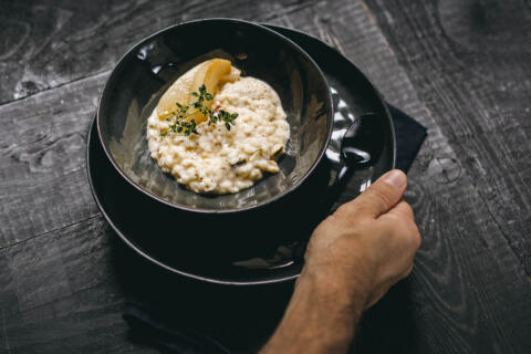 Schweinebauchravioli, junger Rettich, Sauerrahm, Kren
