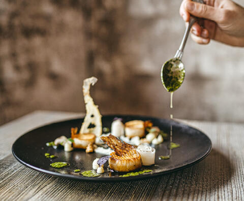 „St. Jacques“ mit Erbsen-Mousseline